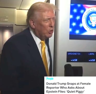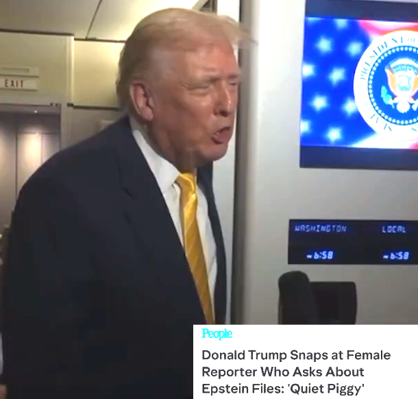 Fat slob tells a reporter, "Quiet Piggy" after she asked Fat Slob about the Epstein files.